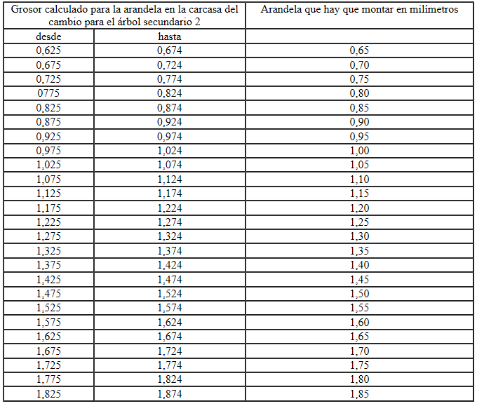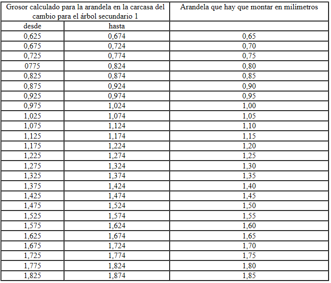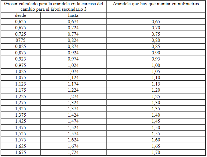 En esta "etapa" se determina el grosor que deben tener las arandelas de ajuste de la carcasa del cambio. En total van montadas 4 arandelas de ajuste. Una arandela sobre cada árbol secundario. El diferencial también tiene aquí una arandela de ajuste.
