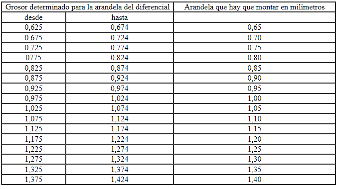 La tensión previa del cojinete para el diferencial es: 0,20 mm.