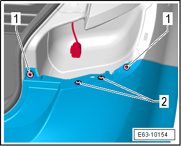 - Desenroscar los tornillos Torx -1- que fijan el revestimiento del paragolpes posterior por la parte inferior del vehículo.