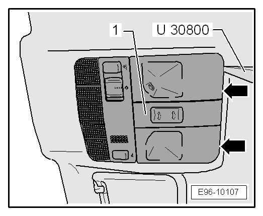 - Desenclipsar las pestañas -flechas- con la palanca -U 30800- y, a continuación, extraer del techo del vehículo la luz interior.