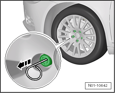 No desprender con destornilladores los capuchones de los tornillos de rueda en vehículos con llantas de aleación; se debe emplear la herramienta prevista para ello (gancho de extracción en la herramienta de a bordo).